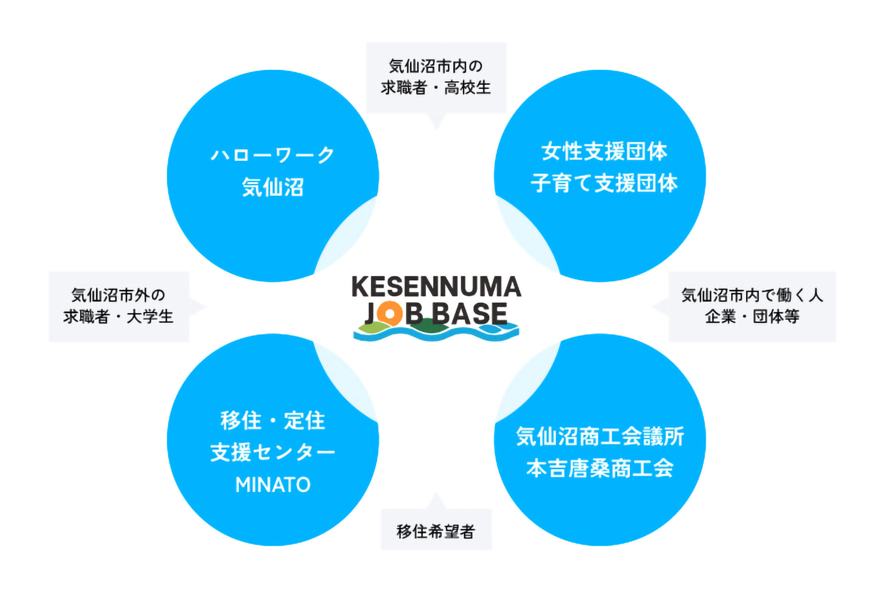 地域内の企業の人事部として機能し、求職者と企業のマッチングを支援します